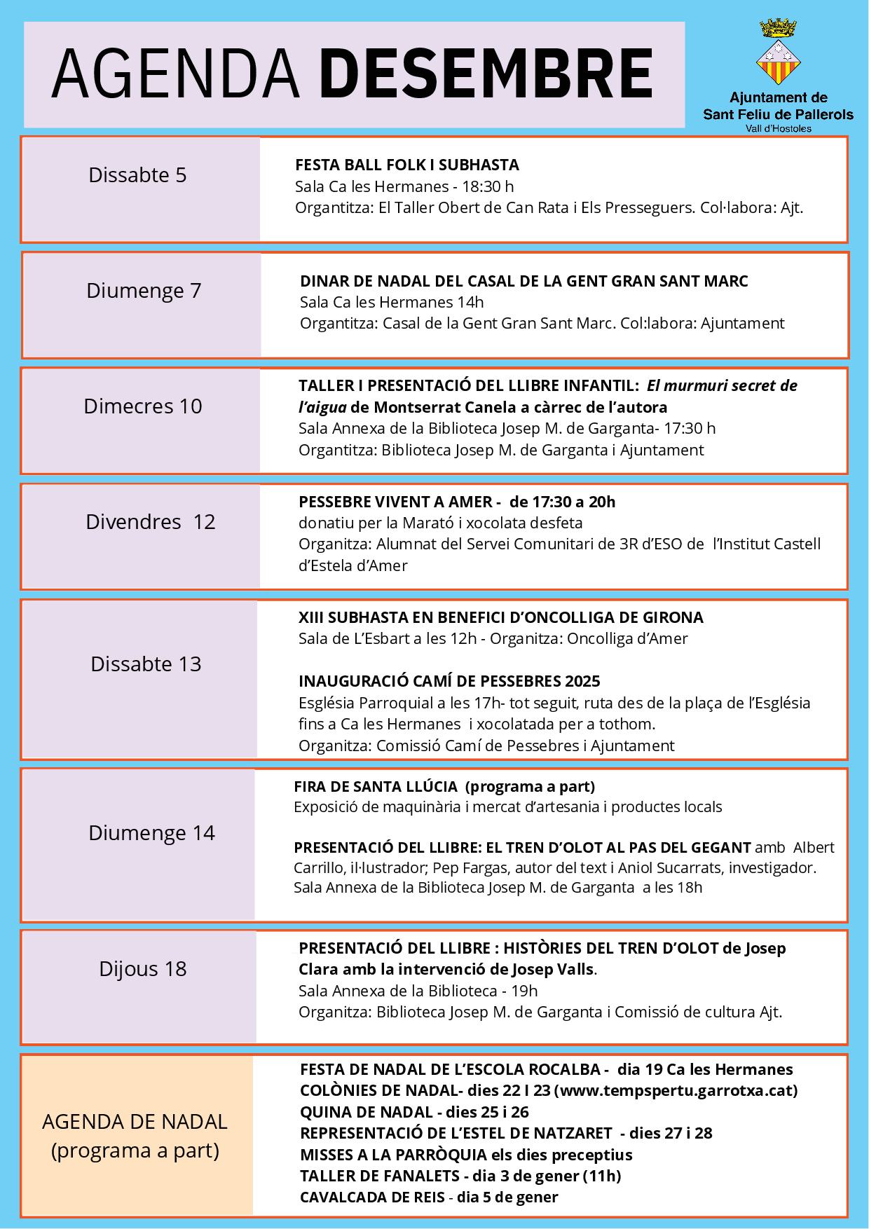 Aquí teniu l’agenda de desembre i en un programa a part podreu gaudir de l’agenda de les activitats de Nadal.
