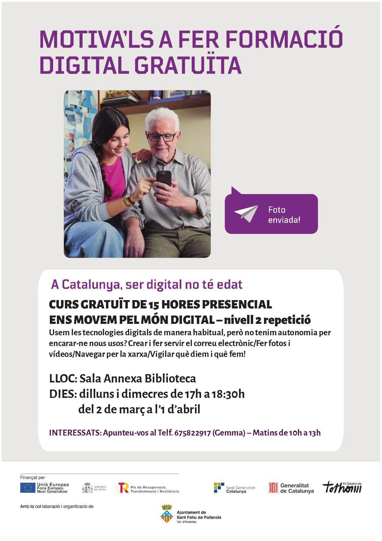 Del 2 de març a l’1 d’abril – Dilluns i dimecres de 17h a 18:30h – Sala Annexa Biblioteca CURS GRATUÏT DE 15 HORES PRESENCIAL – ENS MOVEM PEL MÓN DIGITAL – nivell 2 repetició Usem les tecnologies digitals de manera habitual, però no tenim autonomia per encarar-ne nous usos? Crear i fer servir el […]