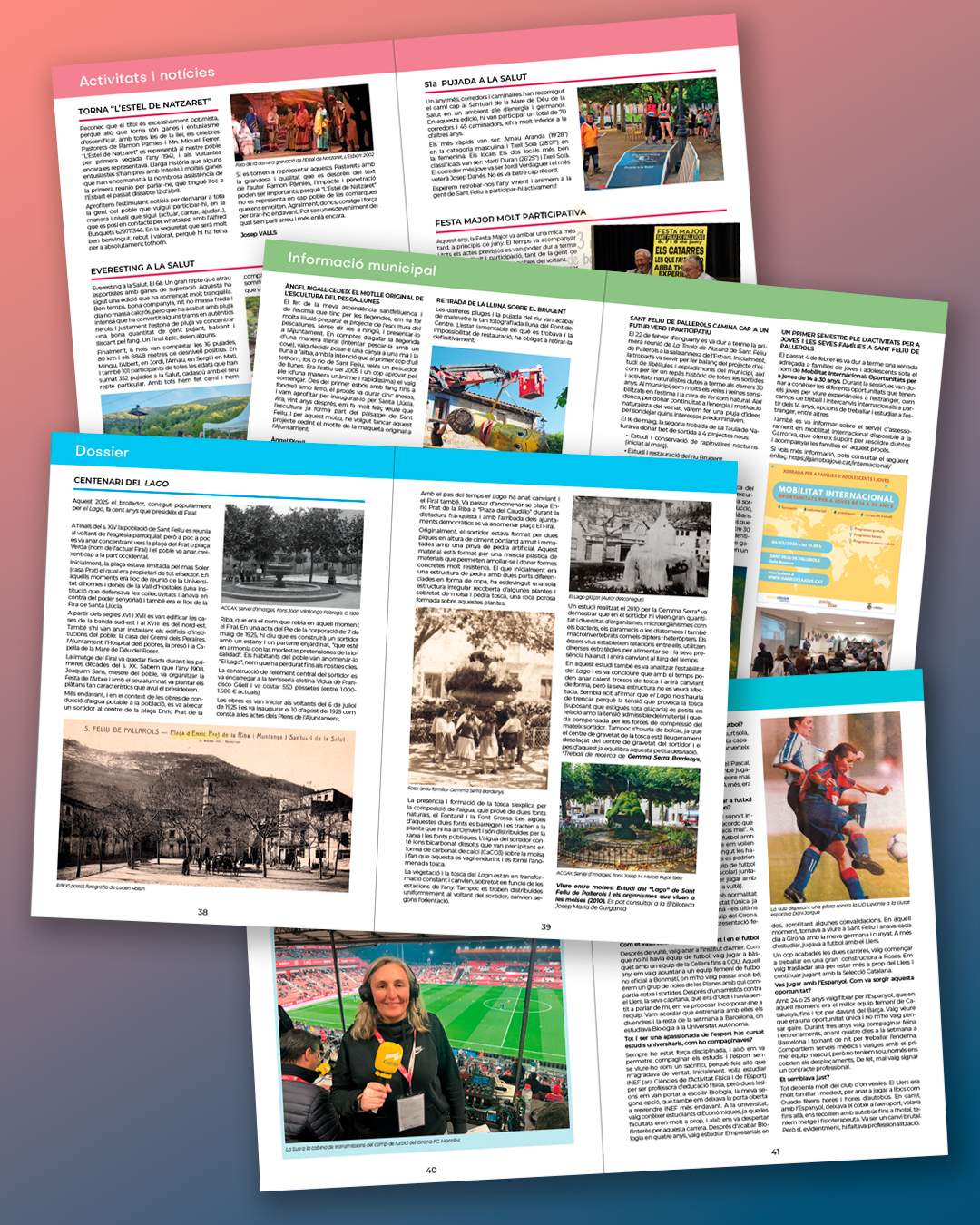 Com sempre hi trobareu la informació municipal, les activitats realitzades per les entitats del municipi, els diferents escrits de l’apartat Mirador; en aquest número hi destaquem el Dossier dels 100 anys del “Lago” i l’entrevista a l’exjugadora de futbol femení Susanna Sala Pascal.