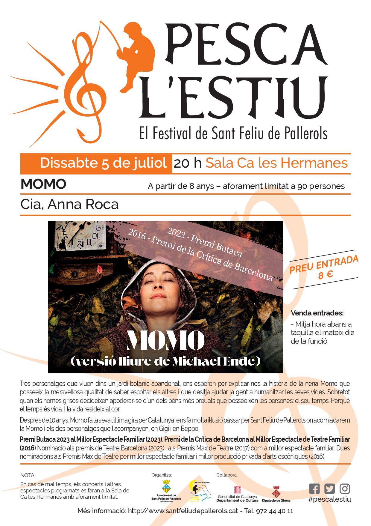 Després de 10 anys, Momo fa la seva última gira per Catalunya i ens fa molta il·lusió passar per Sant Feliu de Pallerols on acomiadarem la Momo i els dos personatges que l’acompanyen, en Gigi i en Beppo.