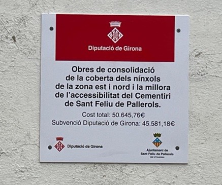L’Ajuntament de Sant Feliu de Pallerols informa que ha rebut una subvenció de la Diputació de Girona destinada a la consolidació de la coberta dels nínxols de la zona est i nord i a la millora de l’accessibilitat del Cementiri de Sant Feliu de Pallerols.