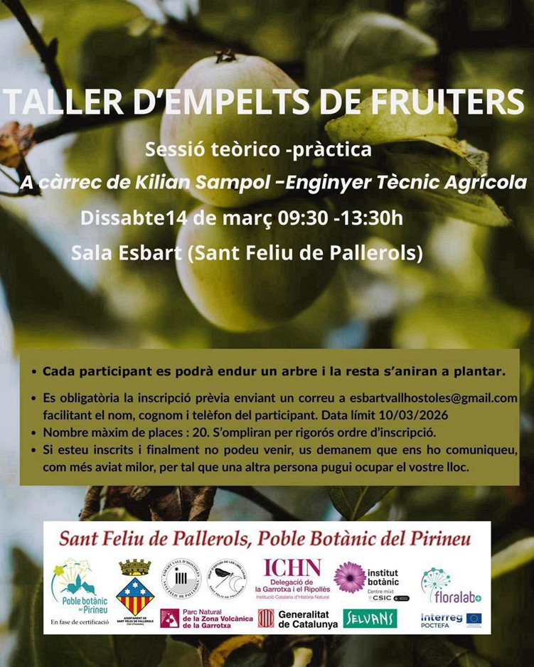 PLACES LIMITADES! 20 persones que s’ompliran per rigorós ordre d’inscripció.
