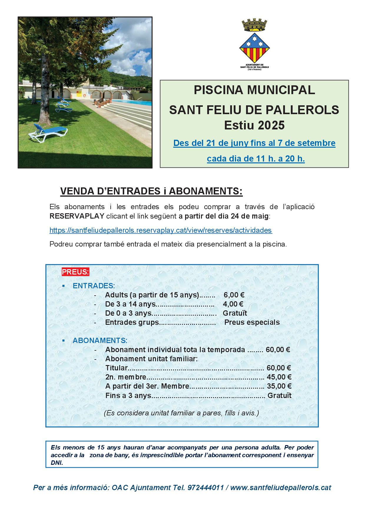 Agenda Venda d’entrades i abonaments piscina municipal Venda d'entrades i abonaments piscina municipal 2025 | PISCINA MUNICIPAL SANT FELIU DE PALLEROLS – Reserva pista de pàdel | Reservaplay < Entrada AnteriorEntrada Posterior >
